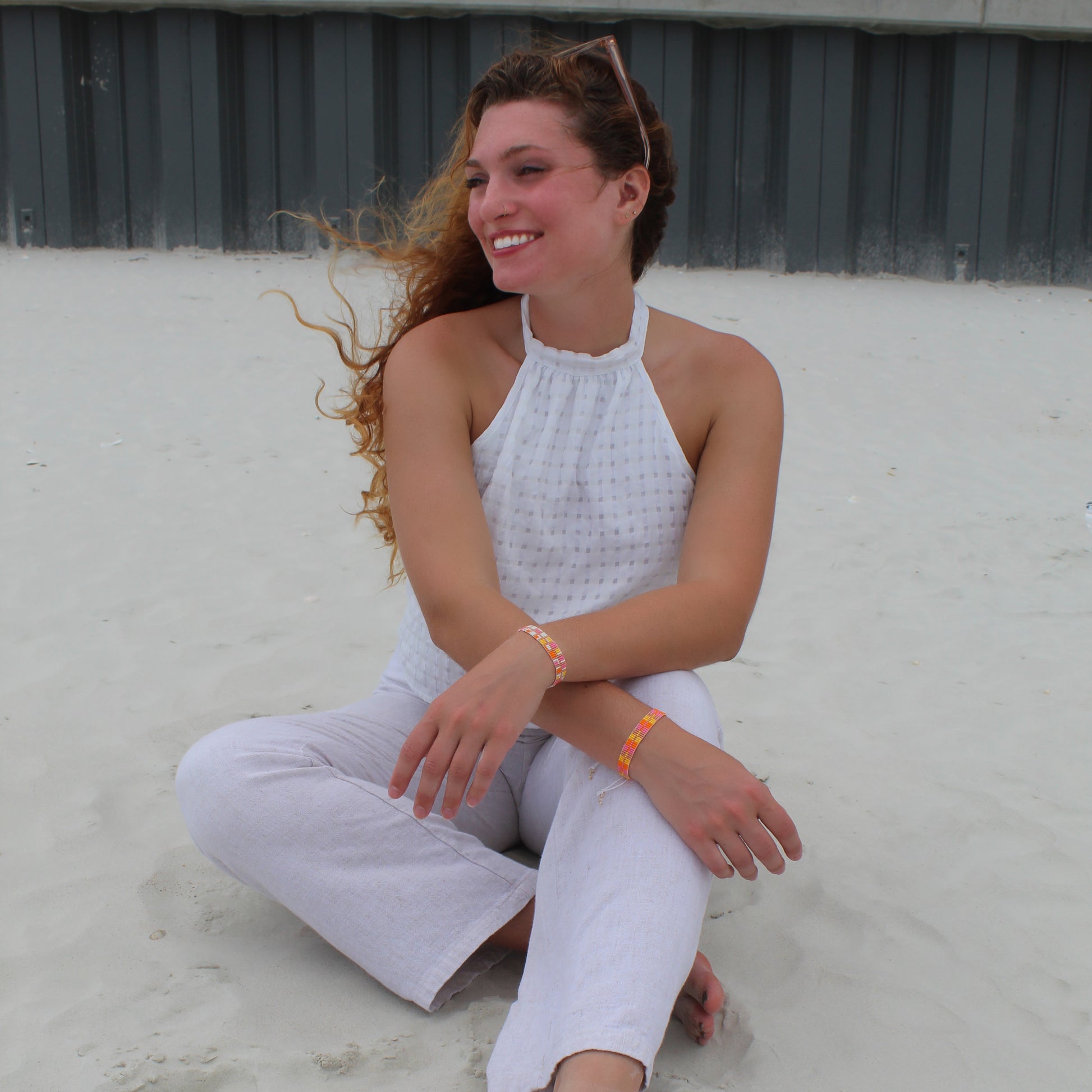This exquisite design was skillfully handcrafted by Monica, using Japanese glass seed beads. Miyuki Delica glass beads are the finest in the world, with impeccable shape and design unmatched by any other. Our 18k gold and silver plating on the export quality brass findings add the perfect ending to this unique design. Each piece is one-of-a-kind, joyfully designed and handcrafted on a loom by Monica herself.