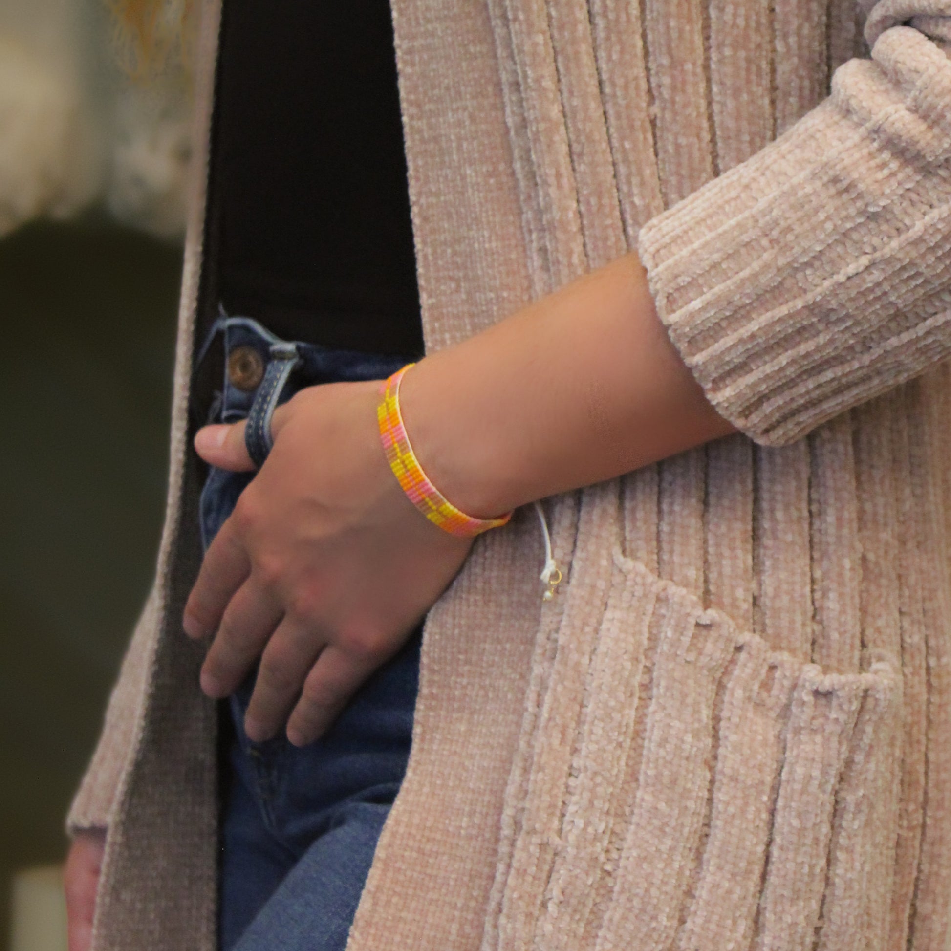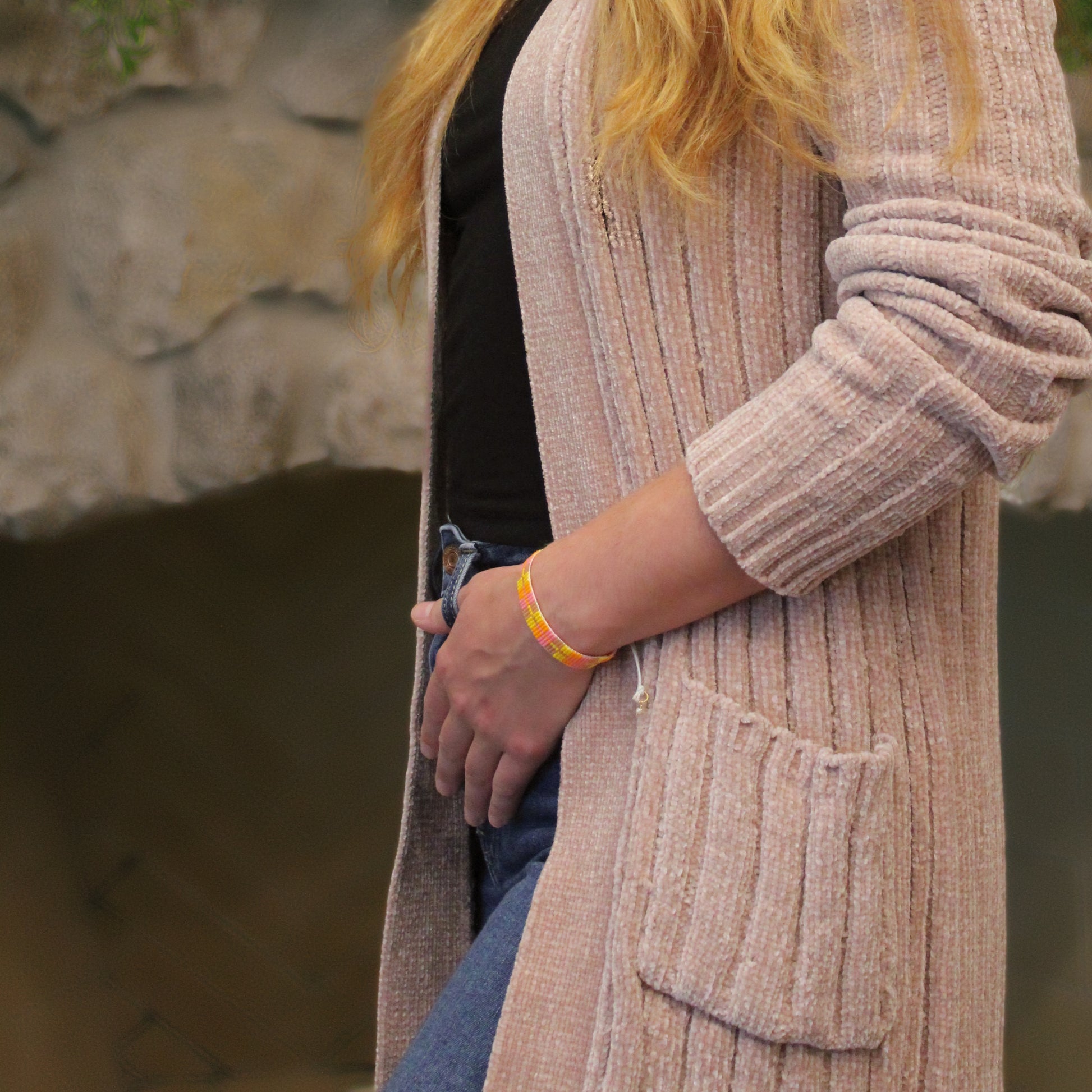 Minimalist Bracelets: 7 beads across (1.27 cm) by 75 beads long (~12.7 cm), Closures and findings (6.35 cm)