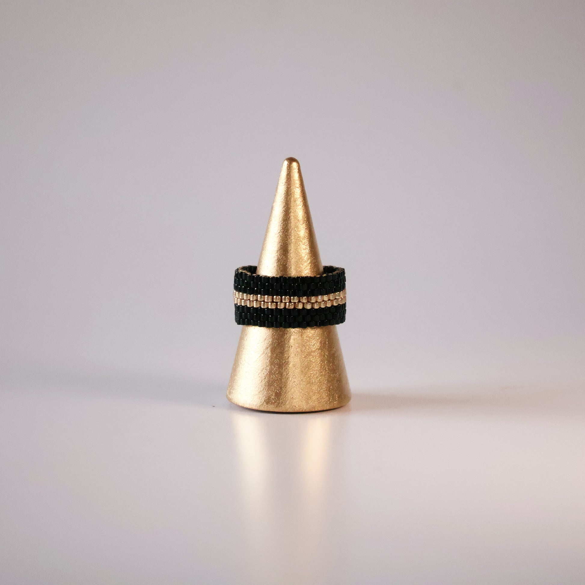 This exquisite design was skillfully handcrafted by Monica, using Japanese glass seed beads. Miyuki Delica glass beads are the finest in the world, with impeccable shape and design unmatched by any other. Our 18k gold and silver plating on the export quality brass findings add the perfect ending to this unique design. Each piece is one-of-a-kind, joyfully designed and handcrafted on a loom by Monica herself.