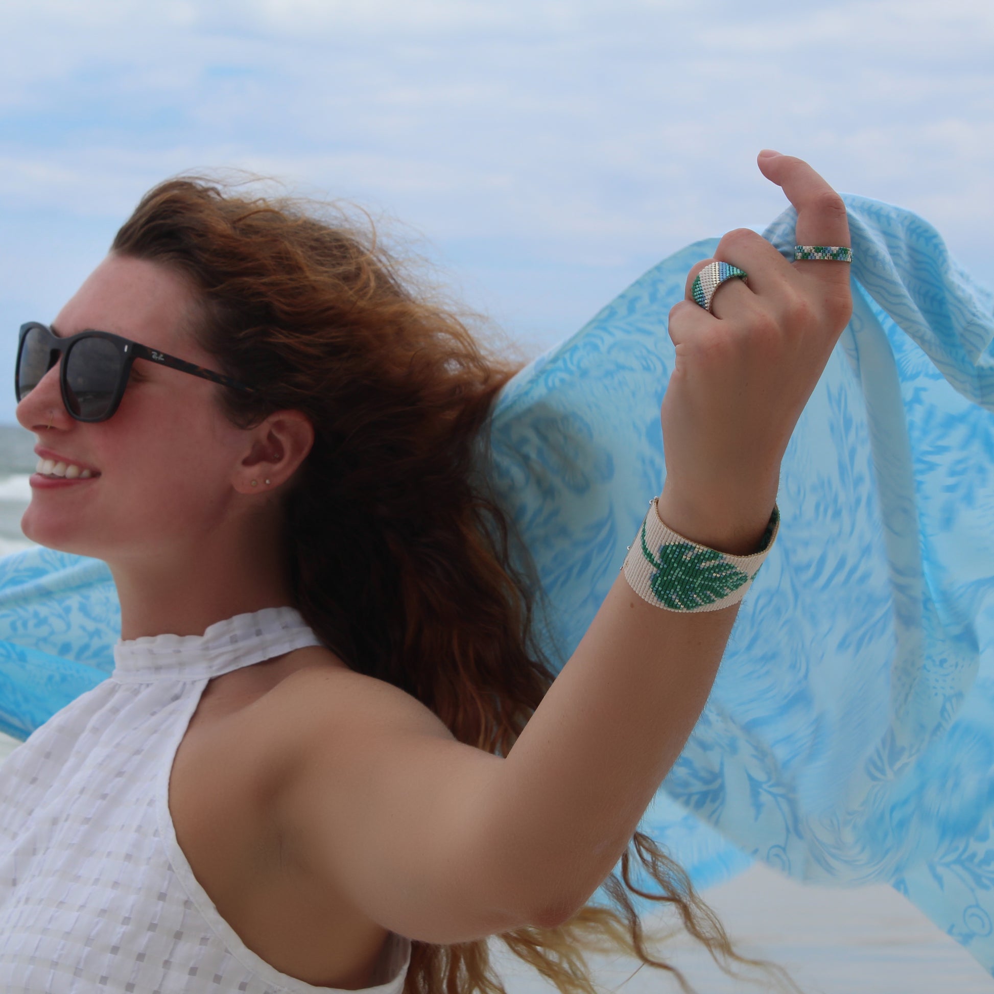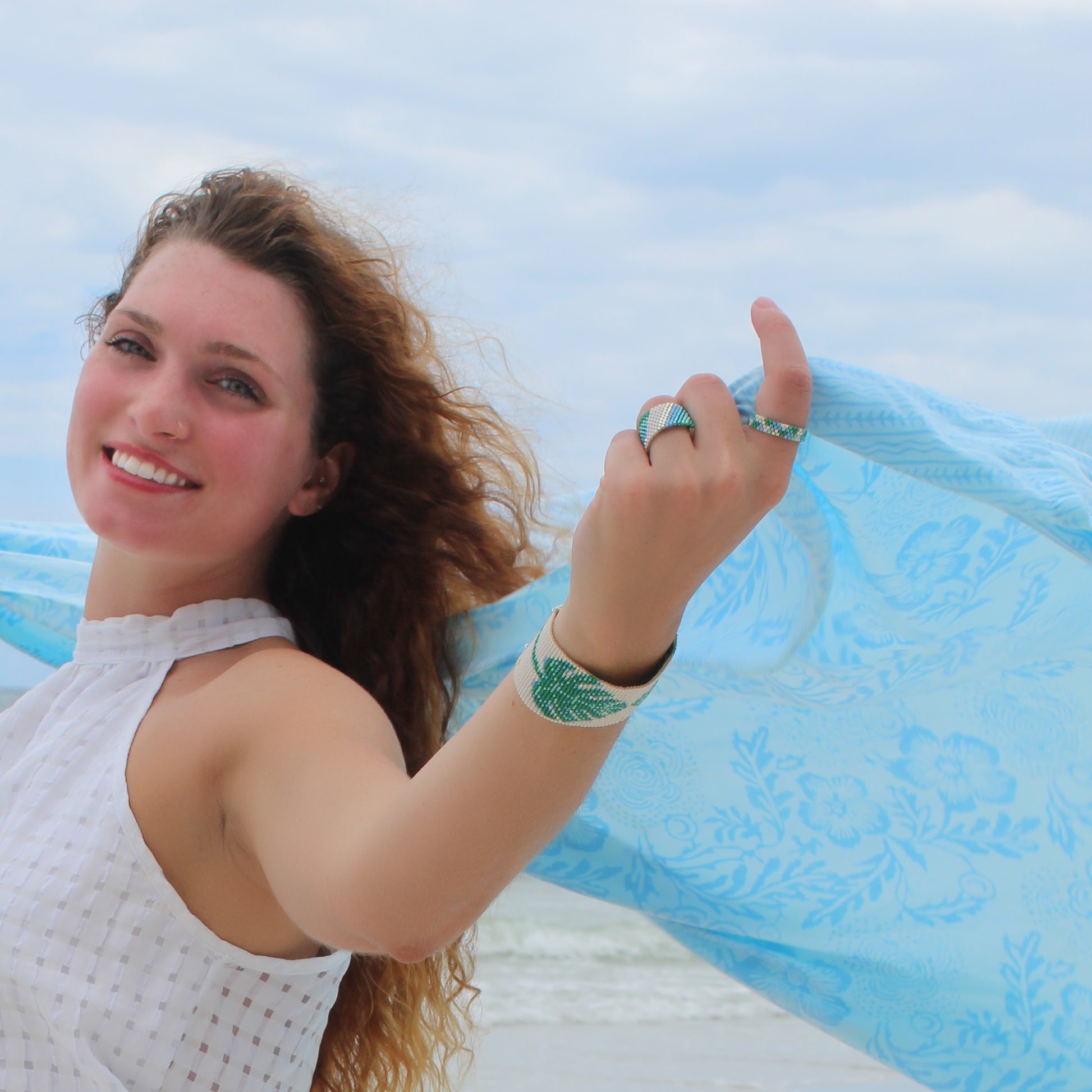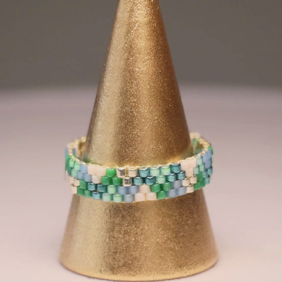 This particular design is handwoven with multi colors in our delicate design of 4 rows. Featuring assorted green, blue, and silver beads, along with the striking contrast of white, which are intricately woven by hand. This stunning design is the perfect choice for those who want to show their love of nature. No matter the occasion, this will keep you grounded and more in tune with the natural world around you.