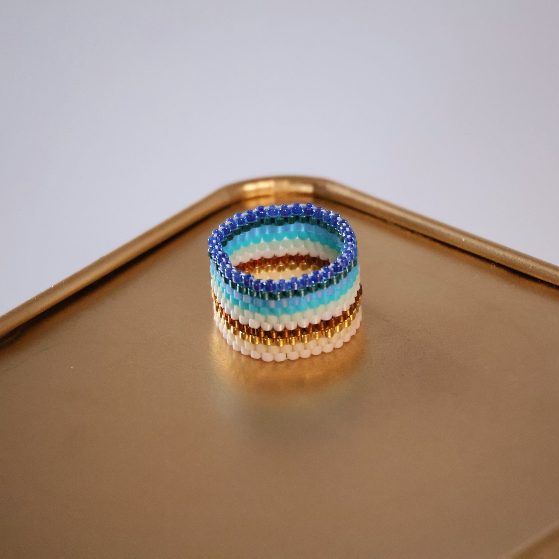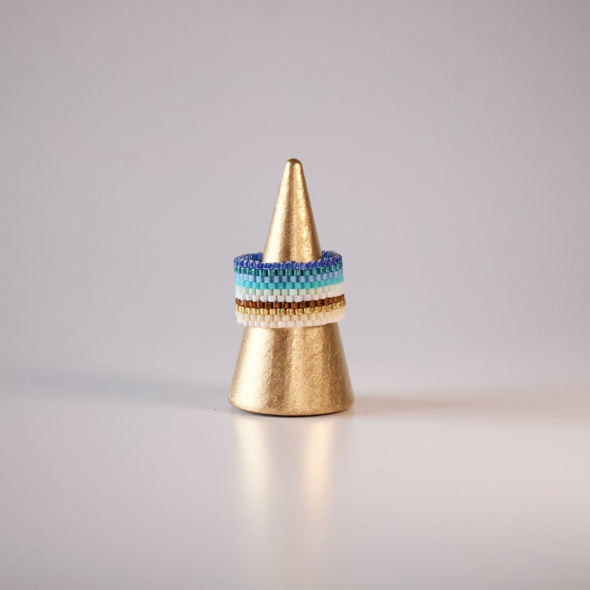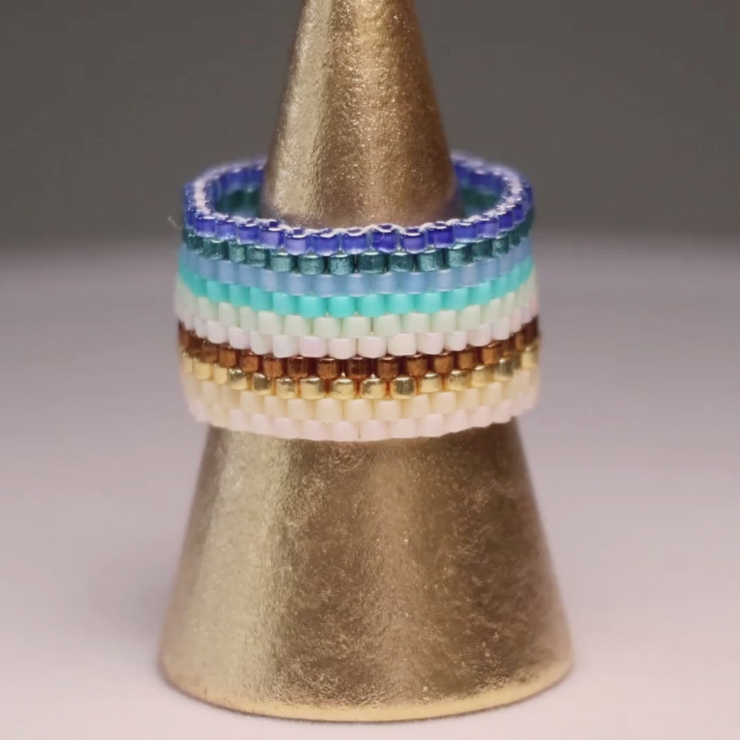 This particular design is handwoven with multi colors in our bold design of 10 rows. Featuring assorted blues, turquoises, greens, copper, off-white, gold, and tan beads, this particular design is the perfect choice for those who want to show their love of the ocean. No matter the occasion, it will add a perfect touch of elegance to any outfit.