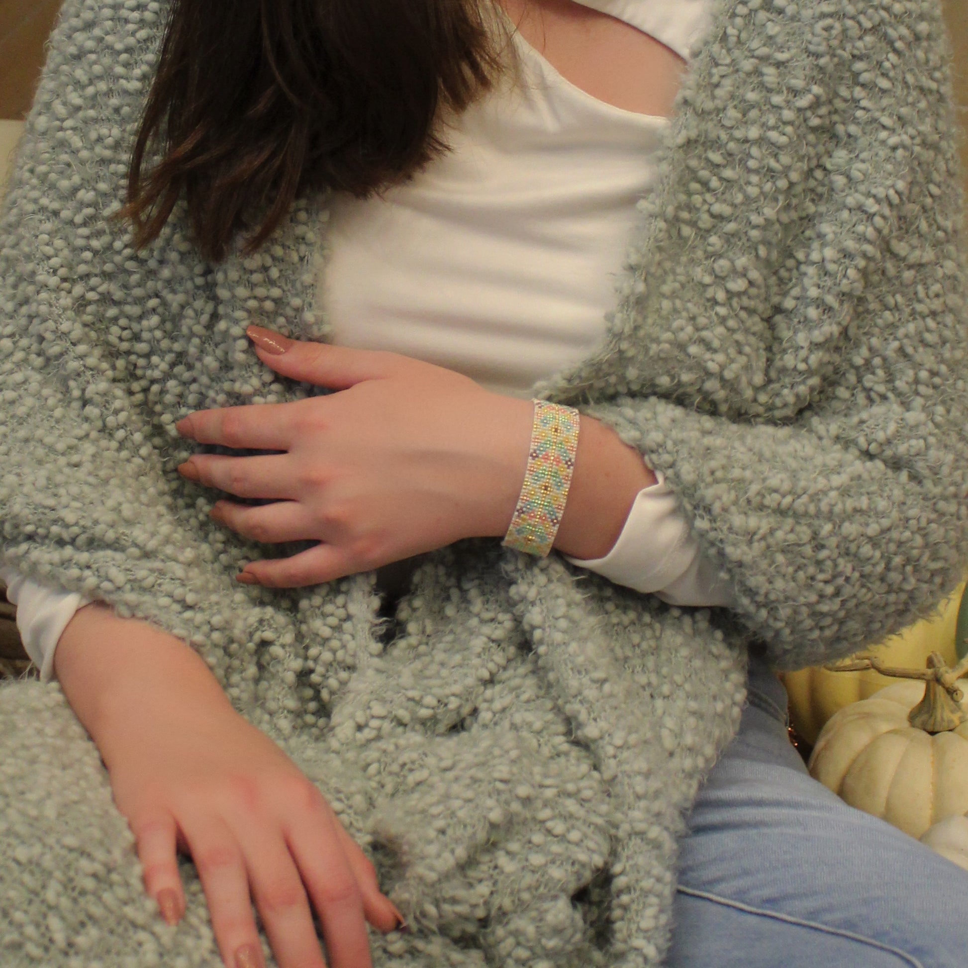 Minimalist Bracelets: 7 beads across (1.27 cm) by 75 beads long (~12.7 cm), Closures and findings (6.35 cm)