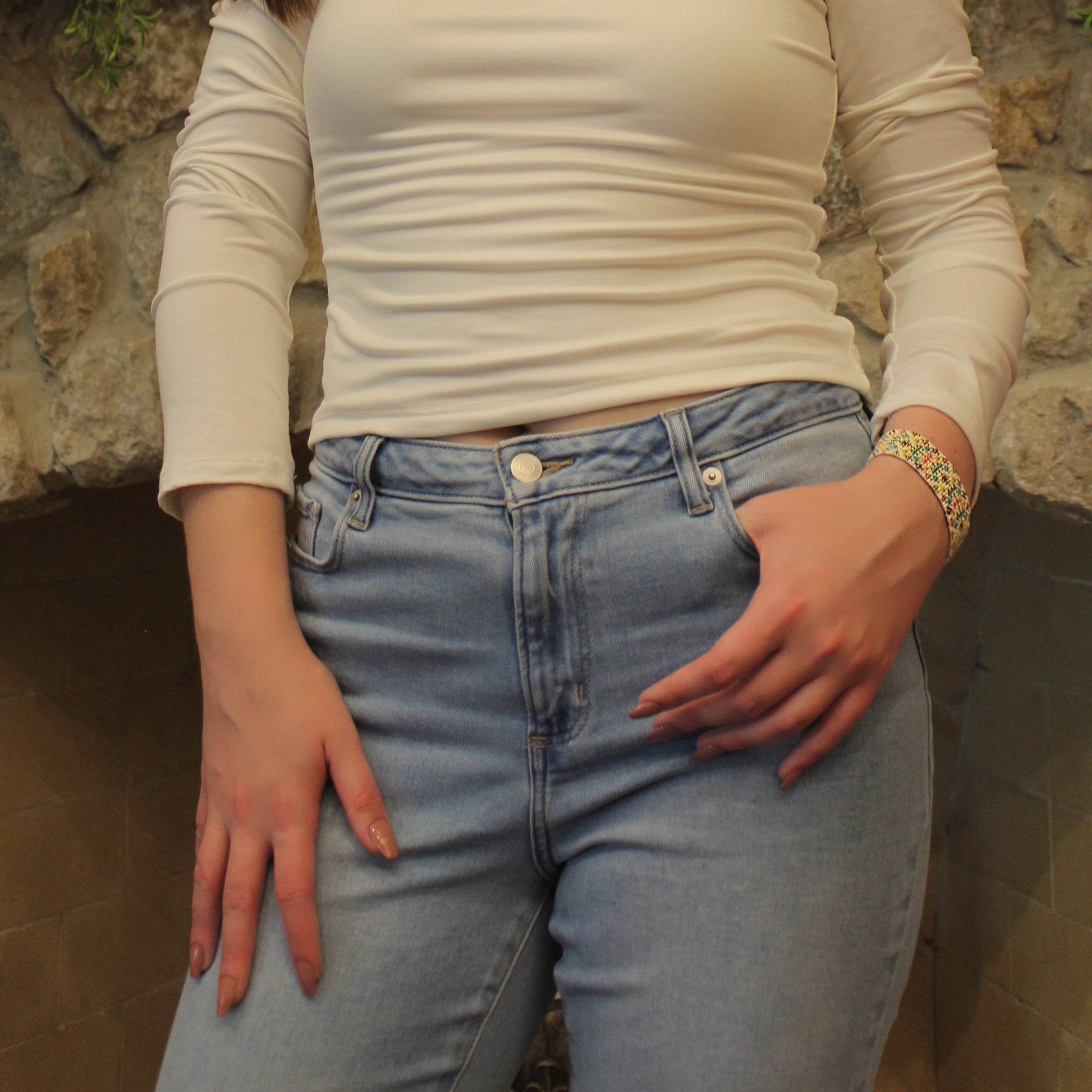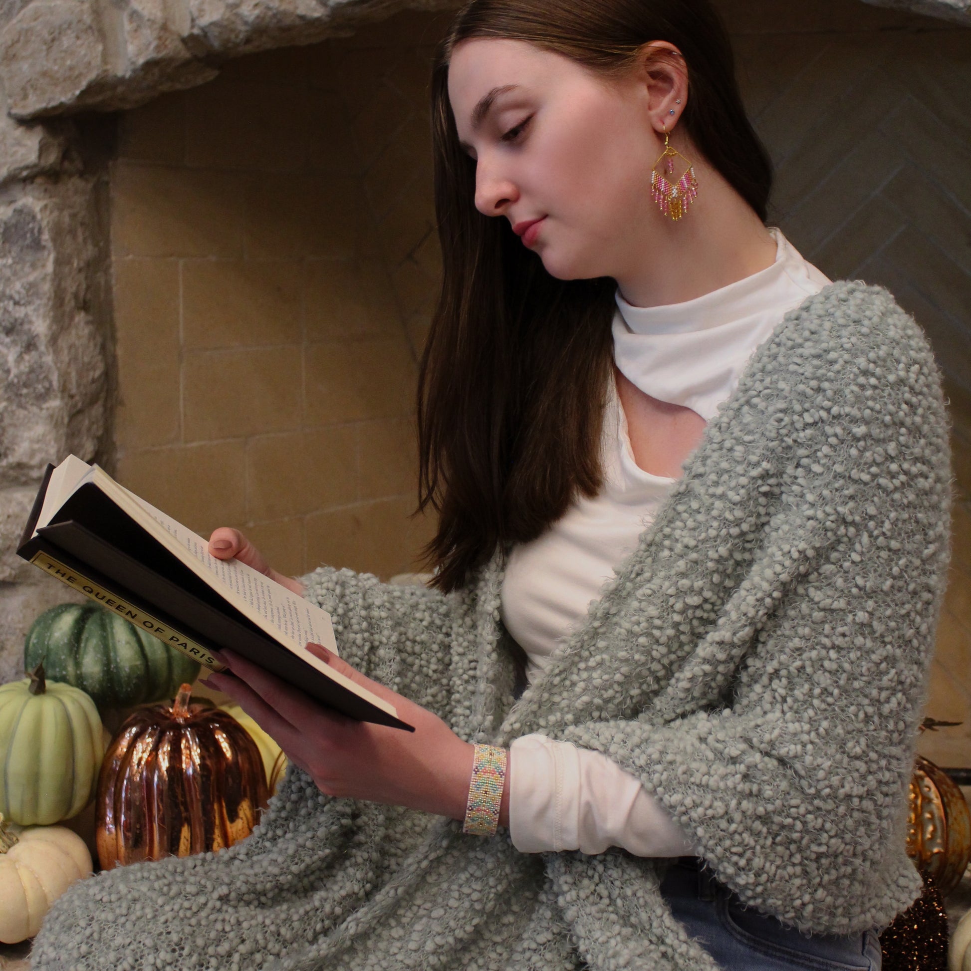 This exquisite design was skillfully handcrafted by Monica, using Japanese glass seed beads. Miyuki Delica glass beads are the finest in the world, with impeccable shape and design unmatched by any other. Our 18k gold and silver plating on the export quality brass findings add the perfect ending to this unique design. Each piece is one-of-a-kind, joyfully designed and handcrafted on a loom by Monica herself.